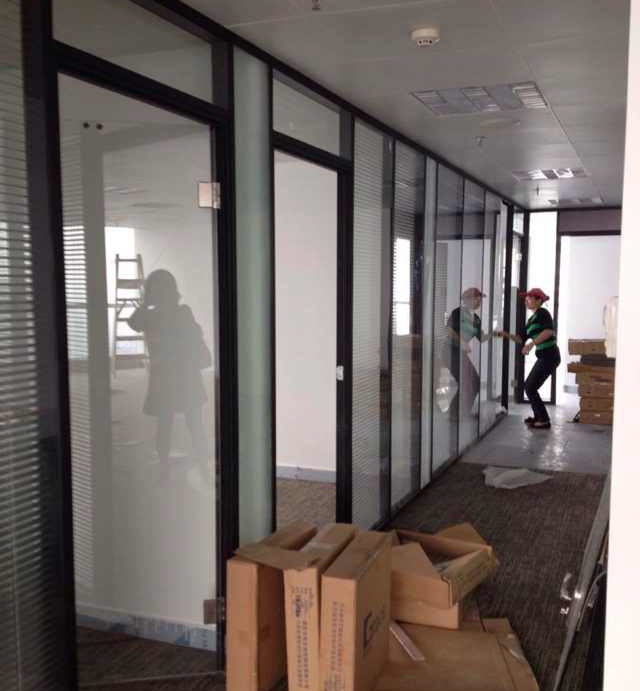 于是客戶唯有求助熟悉廣州辦公隔斷裝修行業(yè)的朋友,找到了我們藝高斯隔斷,我們根據(jù)客戶的需要和現(xiàn)場考察之后決定使用80雙玻百葉,這種雙玻百葉玻璃隔斷在隱蔽跟開放的需求之間可以靈活掌控,主體框架使用鋁合金,藝高斯辦公隔斷在隔音性能、硬度和防火強度等方面都很好,后期的使用維護(hù)等等都很簡單方便快捷,一步到位。考慮到客戶在工期時間方面比較緊,藝高斯也是開足馬力,承諾從下單到安裝完成只要一周時間,目前正在安裝的過程,看工程進(jìn)度完全可以在一周時間內(nèi)完工。